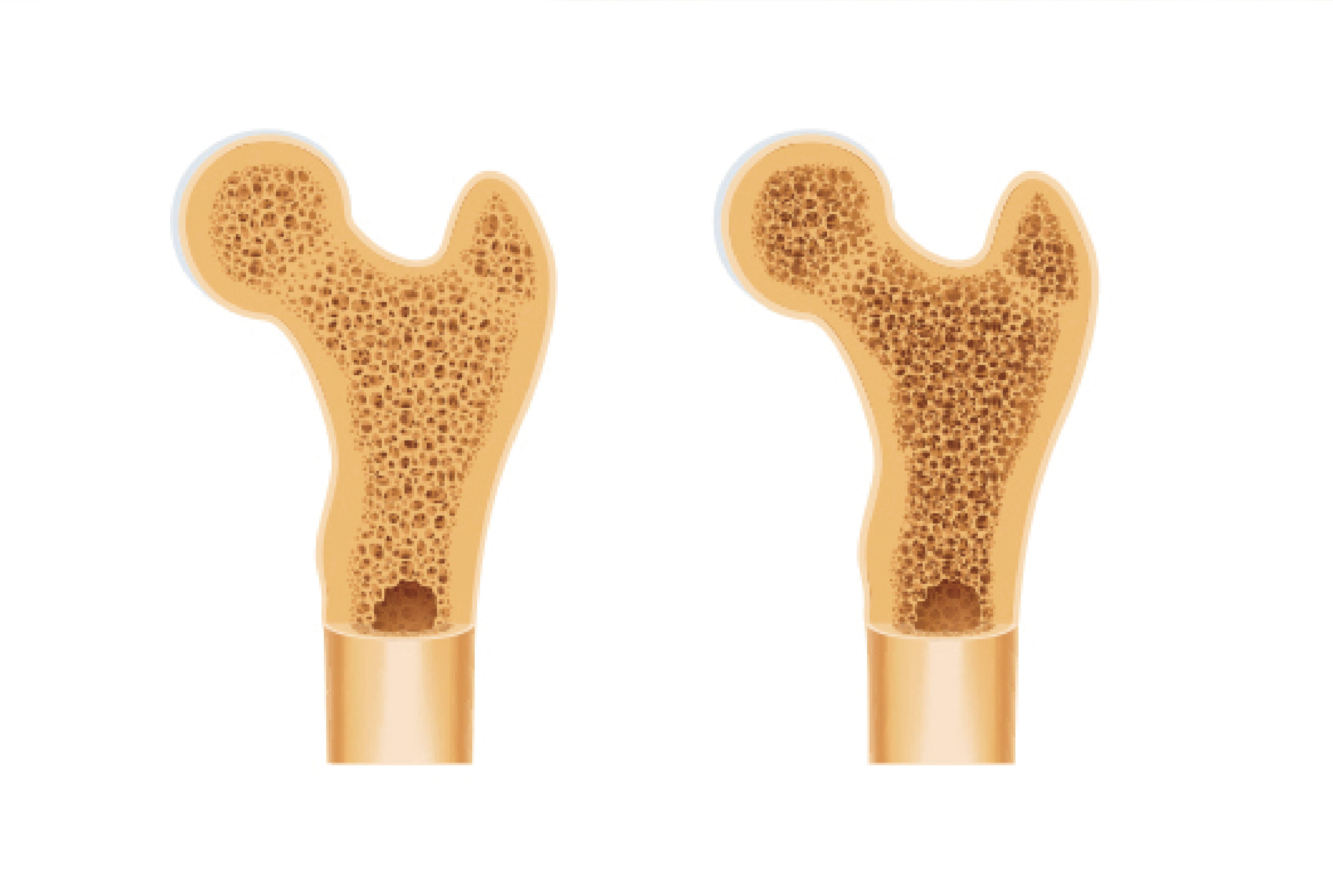 骨粗しょう症は、骨の量が減って骨が弱くなり、折れやすくなる病気です。骨粗しょう症は、男女ともに起こる病気ですが、特に女性は閉経を迎えてホルモンが減少するため、女性に多く見られます。ひどくなると、咳やくしゃみ等のわずかな衝撃でも、骨折することがあります。